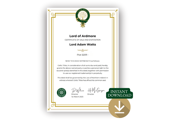 - Become a Lord or Lady of Ardmore with a five square foot plot from the Celtic Titles Nature Reserve