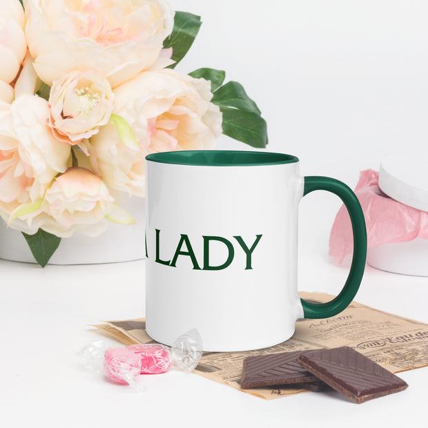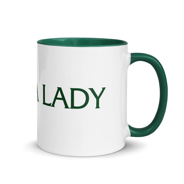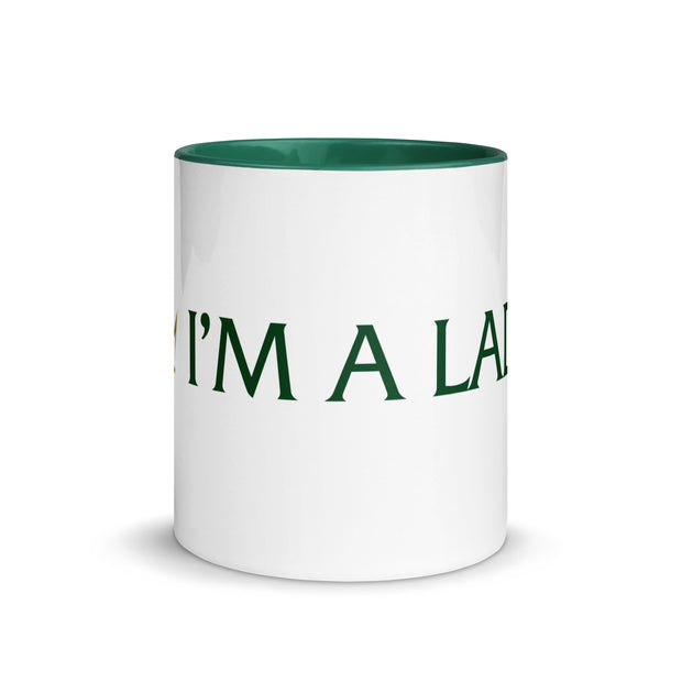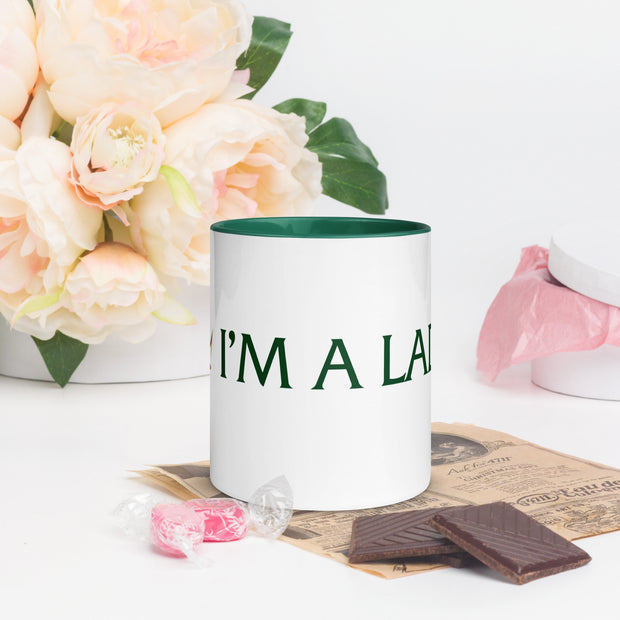 Add a splash of colour to your morning coffee or tea ritual! This ceramic mug features a bold “I’m a Lady” design with a striking green interior, rim, and handle against a crisp white exterior — a stylish way to start the day.
